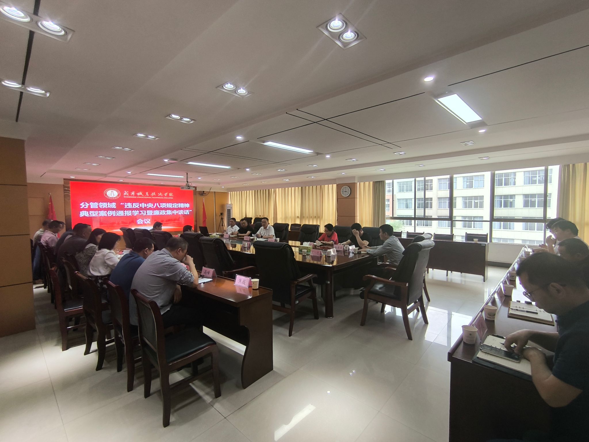2025年4月30日下午,校党委委员、副校长方高文主持召开分管领域违反中央八项规定精神典型案例通报学习暨廉政集中谈话会。本次会议围绕作风建设展开,旨在进一步深化落实中央八项规定精神,压紧压实党风廉政建设主体责任,为学校职业本科建设与高质量发展提供坚实的纪律保障。分管部门主要负责同志及人财物重点岗位负责同志共同参会。