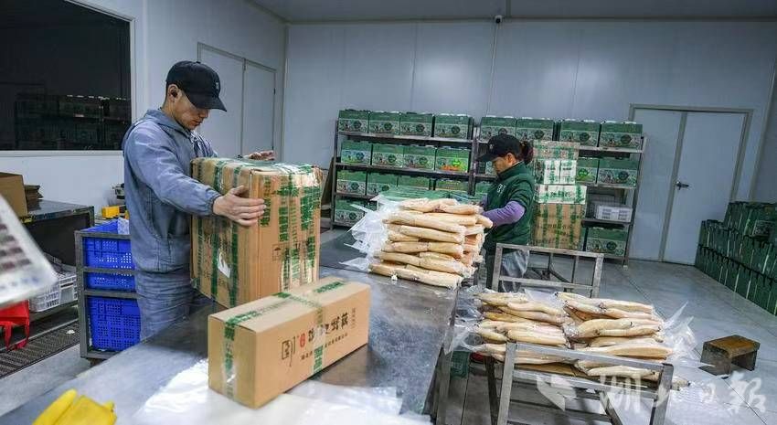 唐攀在加工车间打包野藕(图片来源:湖北日报)