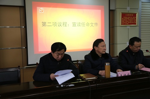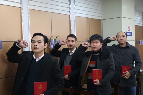 会上,党委副书记龚光松宣读了任命文件;随后在领誓人的带领下,全体新任命的干部面向国徽站立,左手抚按宪法,右手举拳,宣读誓词。“我宣誓:忠于中华人民共和国宪法,维护宪法权威,履行法定职责,忠于祖国、忠于人民,恪尽职守、廉洁奉公,接受人民监督,为建设富强、民主、文明、和谐的社会主义国家努力奋斗!”