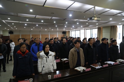 1月3日上午,77779193永利官网新任命干部宪法宣誓仪式在行政楼506会议室举行。仪式由副校长吴高岭主持,校领导和校属各单位主要负责人参加活动。市政府办和公务员局两位同志应邀参加监誓。