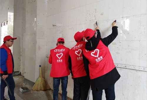 图2 志愿者仔细清理校园“小广告”