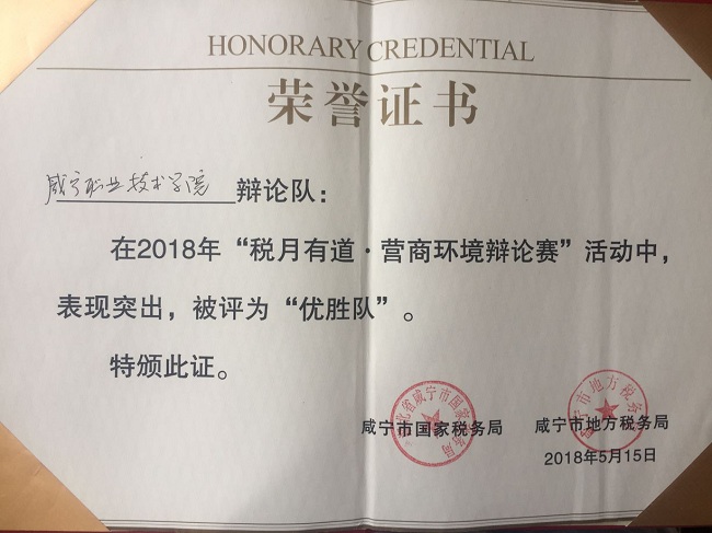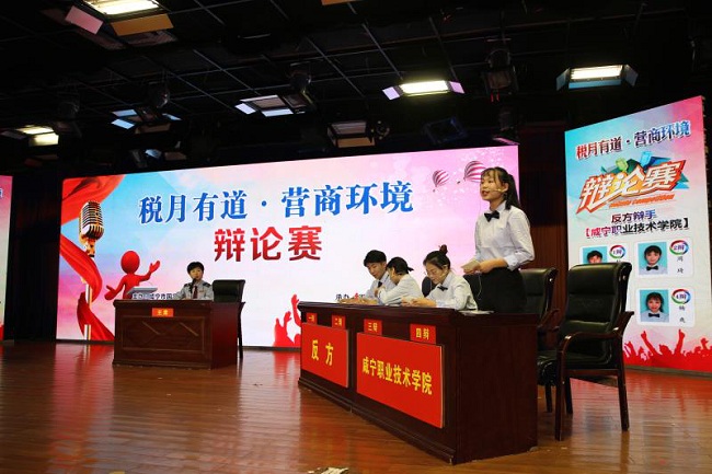 5月15日晚,由咸宁市国税局和咸宁市地税局联合举办,湖北科技学院和我校承办的“税月有道,营商环境”辩论赛在湖北科技学院学术报告厅举行,辩论赛由市委宣传部常务副部长王胜弘,咸宁市文联、作协主席李专,市委党校党委委员解全胜等5位专家担任评委。湖北科技学院副校长戴国强、我校党委副书记龚光松、校长助理陈为民、咸宁市国税局局长彭洪斌、咸宁市地税局局长任伟,以及国税局、地税局其他领导干部、两所学校师生共五百余人观摩了此次比赛。
