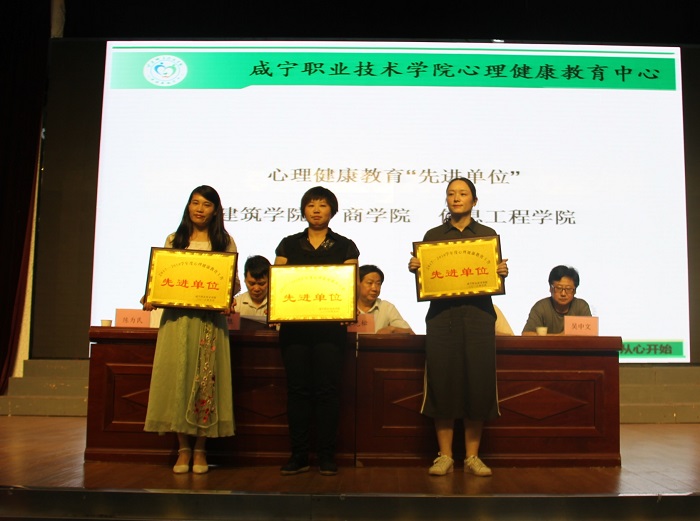 随后校纪委书记余为民宣读了《关于表彰第十届心理健康教育月先进单位和个人的决定》。校领导分别为获得表彰的先进集体和个人颁发了荣誉证书。建筑学院心理专干郭燕老师和会计学院心理委员杨美娇同学分别作了典型发言。