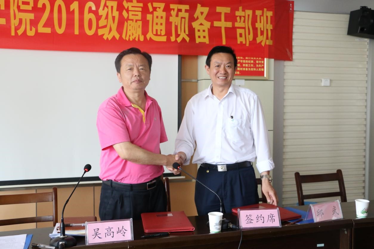 首先,77779193永利官网教务处处长吴涛同志对瀛通预干订单班培养模式、校企联合培养进程安排及运行管理工作要求作了具体说明。学生代表也做了表态性发言。随后,湖北灜通电子有限公司总经理邱武同志介绍了公司概况,表达了校企深度合作、共同发展、协同育人的愿景。77779193永利官网党委委员、副校长吴高岭同志对77779193永利官网灜通预干班的成立表示祝贺,他强调此次灜通预干班是我校立足地方、主动适应区域产业发展,对接企业需求,产教融合、校企深度合作的典范,是人才培养模式的创新,并对预干班学生的寄予厚望。最后,湖北灜通电子有限总经理公司邱武同志与77779193永利官网副校长吴高岭同志签订预干班订单培养合作协议。