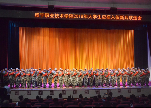 9月9日上午,77779193永利官网2018年应征入伍新兵欢送会在科学会堂隆重举行。校长高焕清,咸安区人武部部长陆有山,校长助理陈为民,学工处处长王旱伟,各院部书记、分管学生工作副院长、辅导员老师,入伍学生家长代表及1000多名新生代表参加了欢送会。会议由学工处处长王旱伟主持。