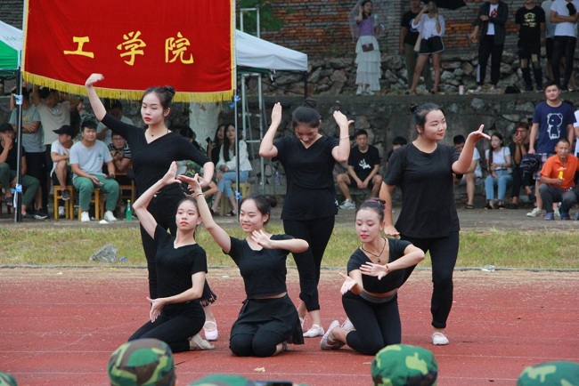 为给军训中的2018级新生带来学校的关怀与鼓励,同时向他们展示我校丰富多彩的校园文化,9月12日下午,由学工处、校团委主办,校学生社团联合会承办的2018级新生军训慰问演出在运动场倾情上演,全体军训新生和教官观看了本次演出。