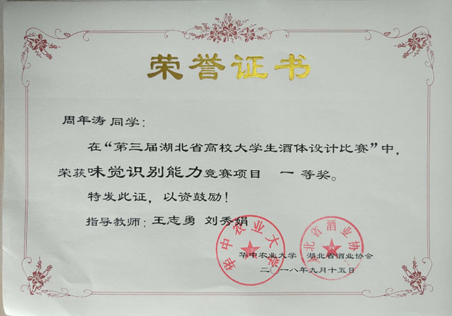 在此次竞赛中,我校周年涛同学获得味觉能力测试一等奖,王宴英同学获得白酒品评三等奖。这次已是我校第三次参加该赛项的竞赛,能在众多的本科及高职院校激烈竞争中取得如此优异的成绩,离不开领导对赛项的重视支持和学生日常的辛苦训练,同时也体现了我校创新创业教育的实际成效。
