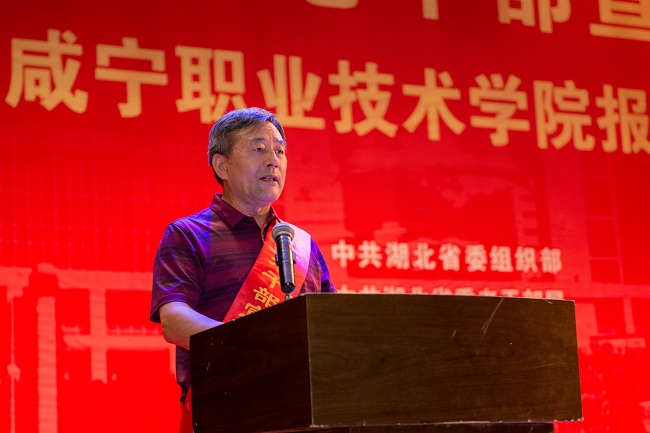 省委老干部局二级巡视员夏长刚,省委老干部局一处处长王彦博,咸宁市老干部局副局长李敏,咸宁职院全体在家校领导、副科级以上干部、学生辅导员、离退休干部代表、学生代表等一同聆听了报告。