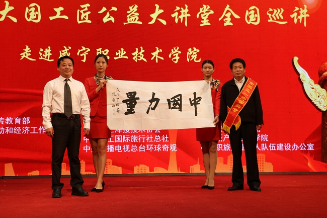 王继成表示,全国劳模、大国工匠和新型的现代技工是实现中华民族伟大复兴的中国梦强大的“中国力量”。本次“中国梦·大国工匠”公益大讲堂走进我校,将很好地激励广大教职工爱岗敬业,激发青年学生勤奋学习、锐意进取,建功立业,助力产业工人队伍建设。我校将借此东风,厚植“工匠精神”文化,培育学生奉献精神,提升学生创新创业实战能力,携手奋进,不忘初心,砥砺前行,勇于担当,共同接力“中国力量”新里程,为实现中华民族伟大复兴的中国梦发挥主力军作用。