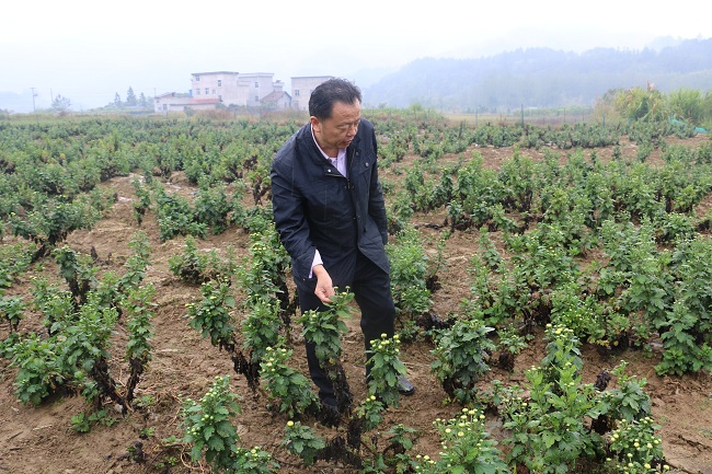 图2 副校长吴高岭参观金丝皇菊种植基地