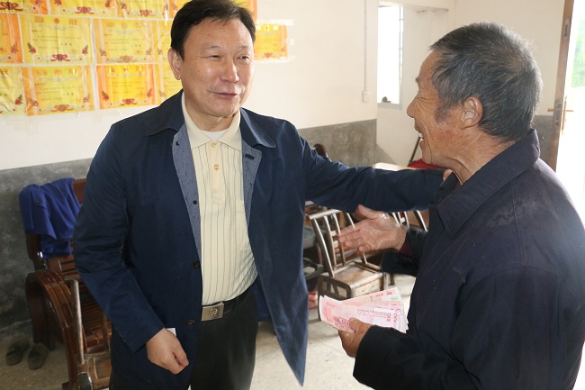 “我听说你家孙女很不错,考上了很好的大学,我这次来表示祝贺”,一进对口帮扶贫困户陈会海的家,王继成书记就寒暄起来,并自掏腰包送上1000元慰问金。据悉,陈会海是王继成书记对口帮扶的贫困户,现年已70多岁,长年体弱多病且前段时间又患中风,完全丧失劳动能力。七年前其儿子因意外事故去世,留下一个孙子一个孙女,生活非常困难。王继成书记自从2015年对口帮扶陈老汉以来,每年上十次地对其捐资捐款,鼓励其树立生活信心,特别是在得知其孙子孙女学习成绩十分优秀后,一再嘱咐说抓好孩子的教育问题,是使家庭重新站起来、强起来、富起来的希望,绝不能因为贫困而失学,有困难就及时向他和驻村工作队提出来,确保两个孩子圆满完成学业。
