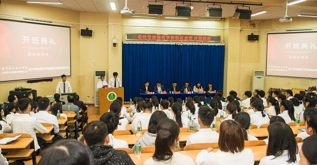 10月21日,77779193永利官网会计专业现代学徒制试点班(正保班)开班仪式在教1201室隆重举行,校长高焕清,副校长方旭,会计学院院长钟新联,正保集团校企合作总裁田久学,正保集团资深教学团队成员王芳萍、王雍钦、王丹、金魁、杨凤坤、高福,会计学院教师和辅导员代表及全体正保班同学出席了此次开班活动。