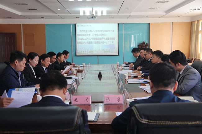 10月30日上午,日本ACU亚洲介护协同组合代表理事奥康佑一行5人,在中国中轻国际控股有限公司海外事业部总经理陈朋先生的陪同下,来到我校考察访问,校党委书记王继成、校长高焕清和有关部门负责同志全程参加活动。