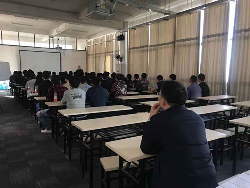 到达维达力实业(赤壁)有限公司后,高校长一行在企业代表引导下,走进教师驻企业办公室了解现代学徒制试点各项管理工作、深入学生实训车间了解岗位情况、亲自进企业授课教室听课了解学生学习情况、察看学生寝室了解学生生活情况。