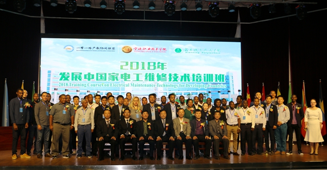 开班仪式上,承载着浓郁的中国传统文化元素的暖场节目——舞龙和旗袍秀表演让外籍学员眼界大开,兴致高涨。王继成热情致辞,希望学员们通过讲授、演练和实践考察,开拓职业视野,提高职业技能。宁波职院党委委员张健莅临指导,预祝培训圆满成功。