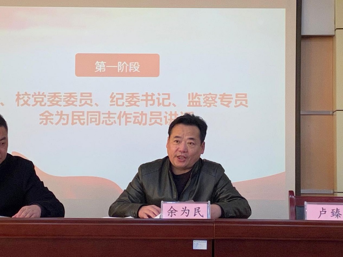 为深入学习贯彻党的二十大精神和十九届中央纪委工作报告精神,推进学校“协作区”三支队伍铸魂提能。12月15日,校纪委、监察专员办公室组织开展第二期纪检监察队伍能力提升培训班暨纪法知识讲座,校党委委员、纪委书记、监察专员余为民出席会议并作开班讲话,会议由纪委委员、纪委副书记、纪监综合室主任吴朝辉主持。