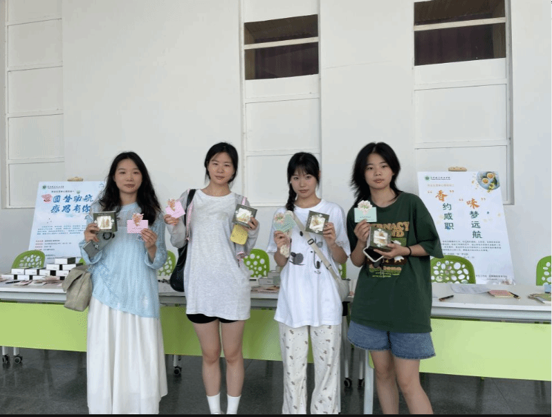 “哇,这里好香,大家快过来呀!”人文艺术学院的毕业生岳同学来到活动地点,与老师热情分享自己实习期间的感受,讲到感恩在校期间与老师相处的点点滴滴,正是在每一次活动中的历练让自己日渐成长,如今已跨专业考上了本科学校播音专业。始于初秋,终于盛夏,同学们为梦远航,在这个特殊的日子,心理中心为同学们送上桂花香片,表达对毕业生们即将步入人生新阶段的美好祝愿,愿大家保持积极向上的心态,勇敢追求自己的人生梦想。