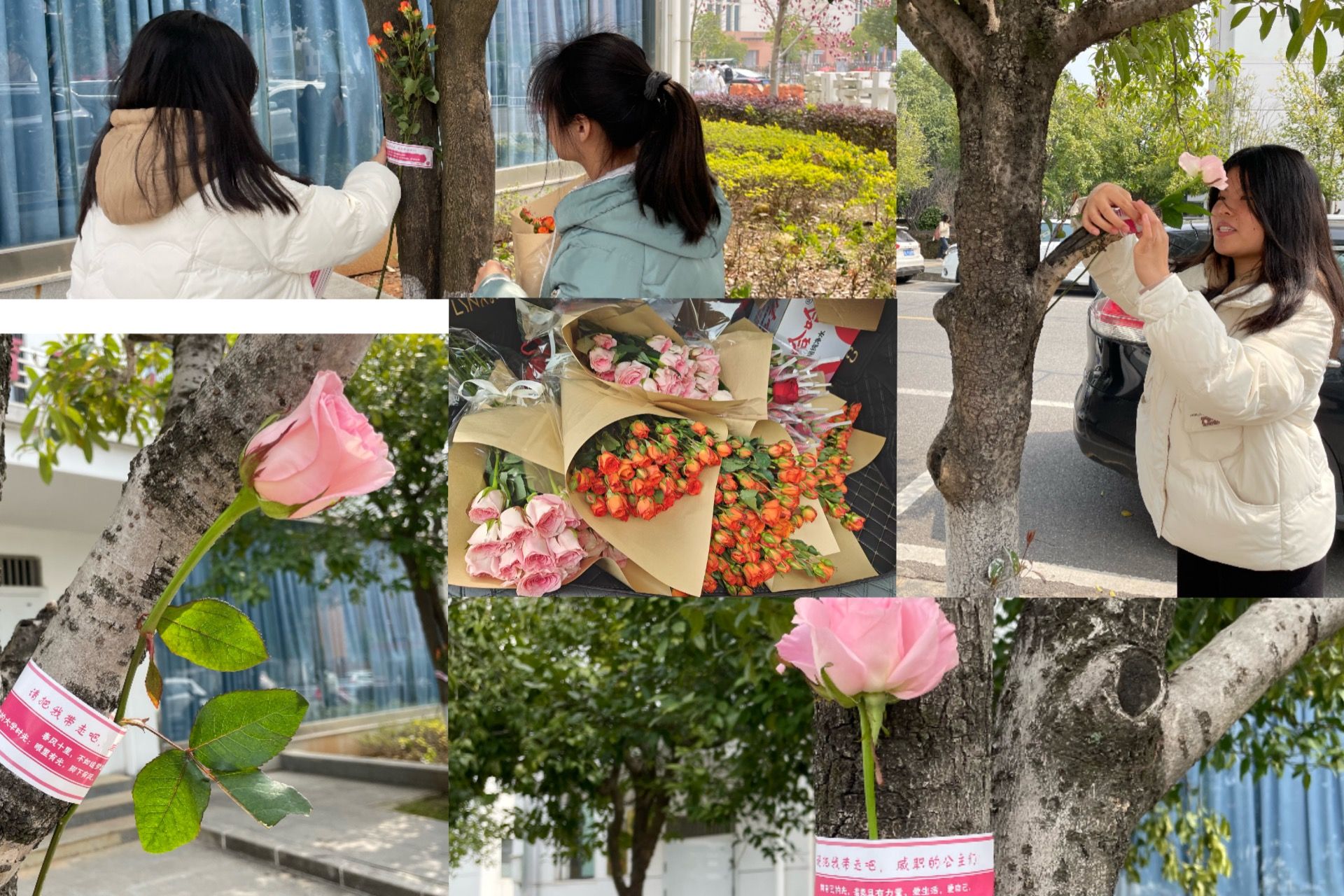 三月春光烂漫,校园里洋溢着温暖的气息。为庆祝女生节,3月8日中午,心理中心携手心理健康协会在校园南门入口主干道、学生宿舍楼等区域开展了“春日送暖,玫瑰传情”女生节送花活动,为全校女生送上节日的祝福与关怀。